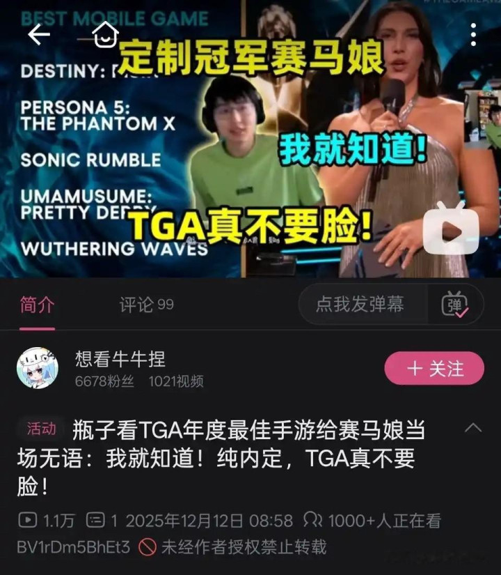 被誉为“游戏界奥斯卡”的The Game Awards(TGA)2025年度颁奖典礼尘埃落定,其中一个奖项的结果在中文游戏社区,特别是二次元手游圈,掀起了远超其他奖项的讨论浪潮:年度最佳移动游戏奖,由现象级作品《赛马娘》夺得,而备受国内玩家关注、此前呼声颇高的《鸣潮》,则继去年之后再次陪跑。一时间,“野鸡奖”、“实至名归”、“黑幕”、“酸葡萄”等各种声音充斥于各大论坛。